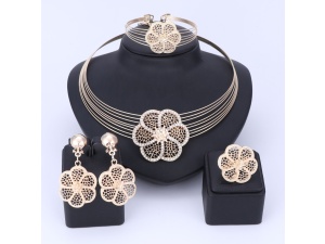 African Beads Crystal Jewelry Set Fashion Wedding of Women Dubai Gold Color Necklace Earrings Bangle RingOrder Now