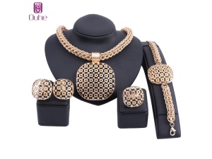 Women Dubai Gold Color Crystal Square Pendant Necklace Earring Bracelet Ring Costumer Nigerian Wedding Jewelry SetOrder Now