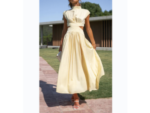 Sweet and Fashionable Street Summer Style Standing Collar Macaron Off waist Long Dress