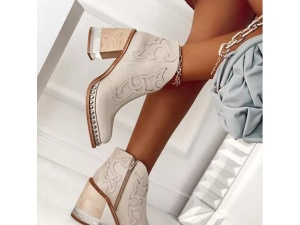 2023 Style Ladies Pointed Cowboy Boots Black Fashion High Heel Ankle Boots Embroidered Rivet Punk Style Short Boots PlusOrder Now