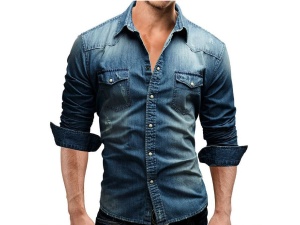 Men's Clothing long-sleeved shirt style youth casual solid color splicing men's denim shirt menOrder Now