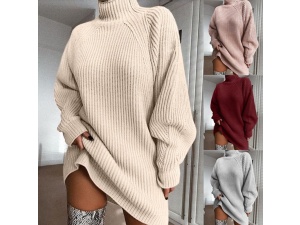 Women's Clothing Knitwear Mid-Length Dress With Shoulder Sleeves And Half Turtleneck SweaterOrder Now