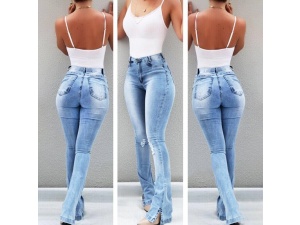 Women's casual fashion elastic slit flared high waist jeans women's trousersOrder Now