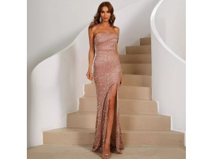 Women's banquet design one-shoulder sequin heavy industry evening dress female fishtail dress dressOrder Now