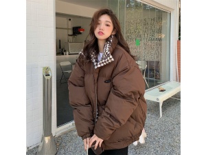 new style checkerboard down cotton coat for women, loose BF style stand collar short cotton coat, cotton jacket, thickened bread coatOrder Now