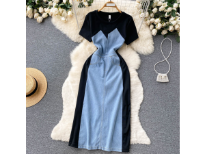 Women's Clothing High-grade cool style contrast color denim patchwork dress summer women's clothing unique and beautiful waist mid-length skirt trendyOrder Now