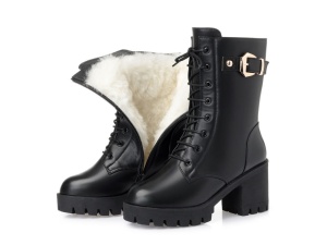 Short Boots Women's Winter Medium Boots Women's Shoes Women's Boots Thick Heel Martin Boots Women's High Heels Leather Boots Fleece-Lined Women's CottOrder Now