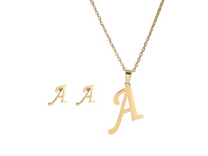 New Trendy Stainless 26 letter English Necklace Earrings Set, Gold Pendant Necklace And Earrings, Stainless Steel Simple Men's And Women's AccessoriesOrder Now