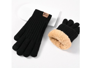 Winter warm touch screen wool double thickened outdoor Arctic fleece lining knit gloves