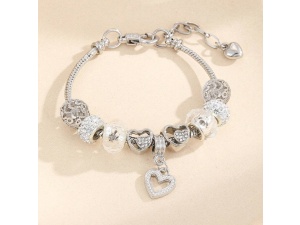 Pan's crystal with hollow heart and diamond inlay DIY handmade large hole bead detachable braceletOrder Now