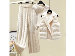 Women's Clothing three piece suit for women, designer sweater, thickened slim vest coat, high waist, cable pattern, wide leg casual pantsOrder Now
