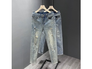 Men's Clothing Nine Point Jeans Men's Summer New Style Trend Slim Fit Small Feet Handsome Ripped Pants Trendy Brand RetroOrder Now