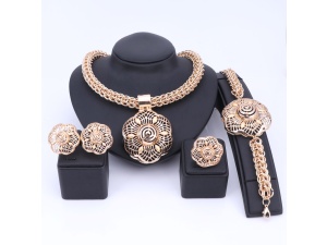 Nigerian Wedding Woman Accessories Jewelry set Wholesale Big Statement Brand Jewelry set Dubai Gold Color Jewelry Set