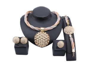 Fashion Women Dubai Gold Color Crystal Jewelry Weddings Party Necklace Earrings Bracelet Ring Jewelry SetOrder Now