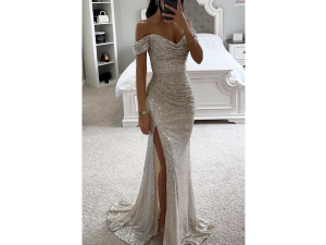 Women's party sequin neckline slit dress INS casual fashion dressOrder Now
