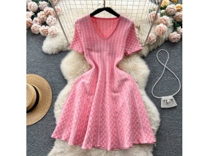 Women's Clothing temperament V neck slim short A line large hem short skirtOrder Now