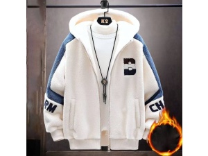 Men's Clothing Sweatshirt Autumn And Winter Plus Velvet Thickened Warm Hooded Embroidered Casual JacketOrder Now
