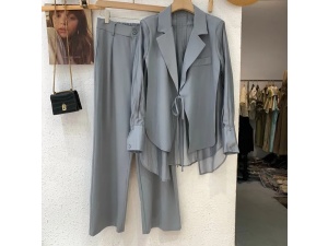 Women's Clothing High Grade Sun Proof Suit Summer Chiffon Splicing Two Piece Jacket High Waist Wide Leg Trousers Two Piece SuitOrder Now