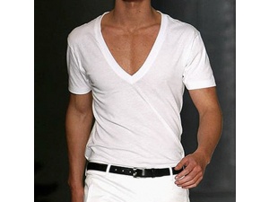 Men's Fitness T-shirt Sports Leisure Cotton Sweat-absorbing Solid Color Deep V-neck TopOrder Now