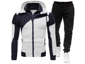 New men's suit personalized color blocked double-layer zipper hooded cardigan slim fit sweatshirt sweatpantsOrder Now