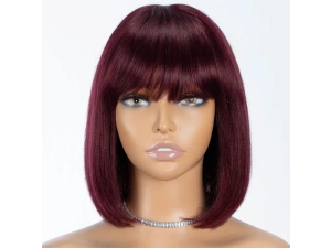 99j Red Human Hair Wigs For Women Short Remy Brazilian Hair Wigs With Bangs P4/30 Highlight Short Straight Hair Wigs With BangsOrder Now