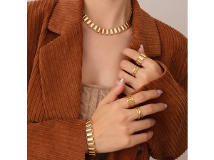 Ferris style personality fashion hollow geometric ring necklace bracelet set gold plated jewelry set