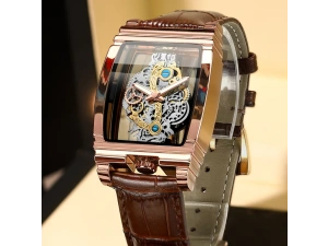 Men's Watches Square Dial Transparent Hollow Quartz Watch Leather Watch BandOrder Now