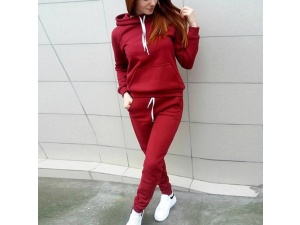 Women's Clothing Solid Color Patternless Long Sleeve Pants Outdoor Sports Hoodie 2 SetsOrder Now