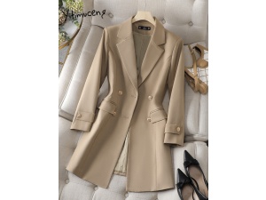 Yitimuceng Blazer Jackets for Women Autumn Winter 2023 New Korean Fashion Long Sleeve Double Breasted Casual Midi BlazerOrder Now