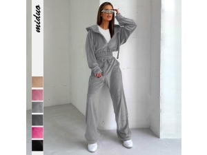 Women's Clothing autumn and winter women's clothing solid color hooded casual zipper sports suit suede jacket trousers two piece suitOrder Now