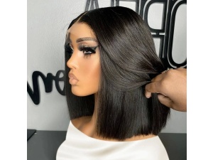 Transparent 13X4 Lace Frontal Wigs Natural Black Short Bob Straight Wigs Middle Part Brazilian Remy Hair 180% DensityOrder Now