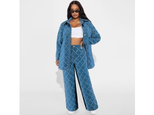 Women's Clothing Denim Fringe Plaid Cardigan Drop Shoulder Long Sleeve SuitOrder Now
