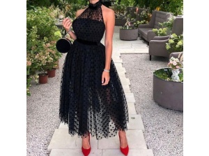 Women's Clothing New autumn black mesh polka dot sleeveless waist long skirtOrder Now