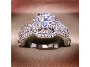 New white gold plated simulated diamond ring double layer super sparkling zirconia ring for womenOrder Now