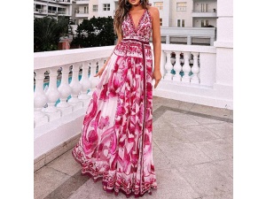 women's fashion sexy printed halter neck mid-length dressOrder Now