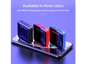 RXshengtai 20000mAh Power Bank Dual USB Output Mirror Surface Fast Charging with LED Flashlight Mini Power Bank External Battery Charger for CarOrder Now