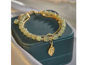 Fashion New High-end Sense Golden Branches and Jade Leaves Glaze Beaded Bracelet Cross-border Creative Mori Niche Light Luxury Women's BraceletOrder Now