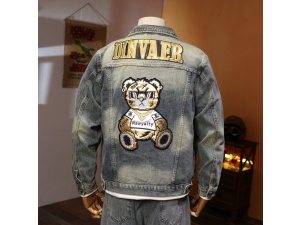 Little Bear [Trendy Style] High Luxury Motorcycle Style Embroidery Fashion Men's denim jacket men's topOrder Now