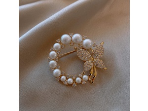 Designer diamond pearl Butterfly brooch literary style temperament fashion personality fixed clothing accessoriesOrder Now