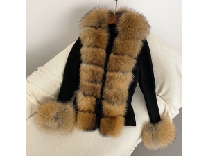 Women's Clothing popular women's knitted sweater with detachable real fox fur collar and cuffs fur cardigan knitted sweater fur coat for women
