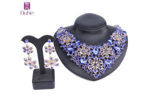Women Bridal Rhinestone Crystal Flower Wedding Necklace Earring Jewelry Sets For Brides Formal DressOrder Now