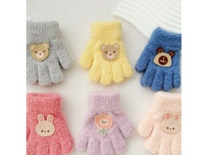 Kids' gloves Children's gloves autumn and winter new warm and cold particle velvet cute cartoon boy and girl baby five fingers