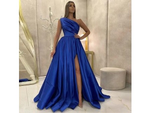 One Shoulder Sexy Slit Satin Evening DressOrder Now