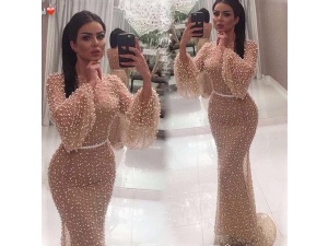 women's Clothing Popular Mesh Round Neck Puff Sleeve Dress Tight Hip SkirtOrder Now