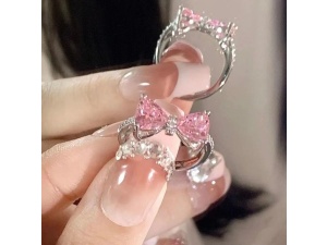 Bow Open Women's Pink Diamond French Exquisite Micro Set Ring In Adjustable OpeningOrder Now