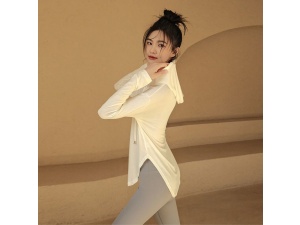 Sports Top Women's Autumn Pilates Loose Hooded Thin Yoga Running Outerwear Sunscreen Long Sleeve Fitness ClothingOrder Now