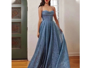 Women's Clothing Long Skirt Sleeveless Tube Top Gold Sprinkled Sexy Suspender Large Swing DressOrder Now