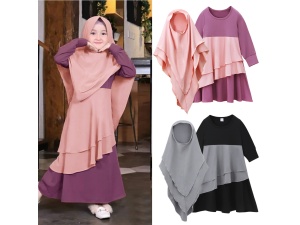 Mother & Kids Girls Spring and Autumn Long Sleeve Colorblocked Ruffled Dress + Headscarf Two piece Children's ClothingOrder Now