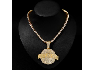 Hip hop alloy full diamond round pendant RTMUNDIAL hip hop style Cuban round necklace men's necklace