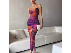 Women's Clothing Sleeveless Tie Dye Sling Print Seaside Vacation Mesh DressOrder Now
